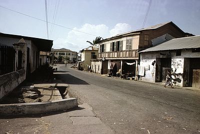 Leaving Bill at Kakum forest, I went on with Solomon to Winneba, where he dropped me off at the Lagoon Lodge, a hotel recommended to me by some backpackers at Mole. The hotel did not exist when I lived in Winneba in the 60s, and the staff were greatly excited when I showed them a print of the photograph below, which I had taken then. The hotel had been built on the greenery in the foreground!