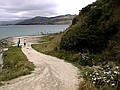 The Otago Peninsula is a superb location for wildlife. Below the headland (above left) is a small beach containing a colony of Fur Seals. From a car park, a path (left) leads down the side of the beach, and I noticed an area containing bird droppings. A closer look revealed a small burrow, which belonged to a family of Blue Penguins. The chick (right) was quietly waiting inside the burrow for its parents who would return from the sea at dusk with food. |